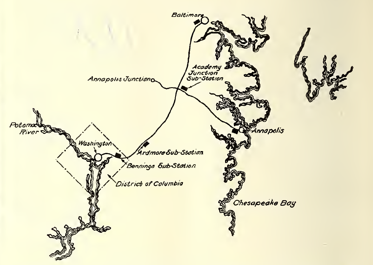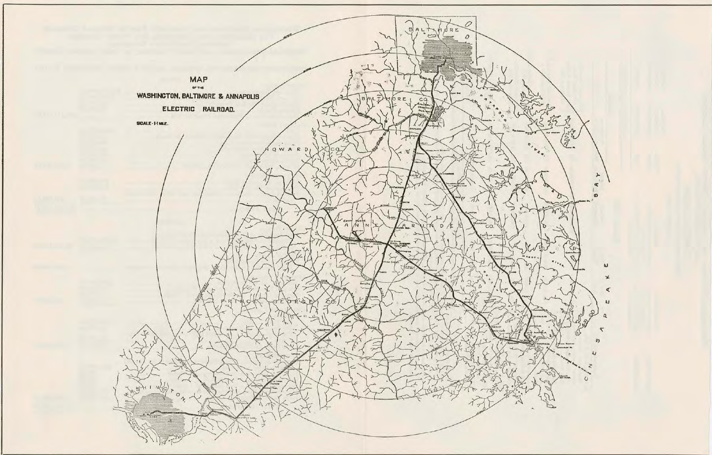 Map of the Washington, Baltimore & Annapolis Electric Railroad.