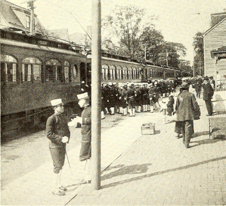Cadets boarding a 6 Car Washington, Baltimore & Annapolis Train on King George Street. Photo taken around 200 King George Street looking West.